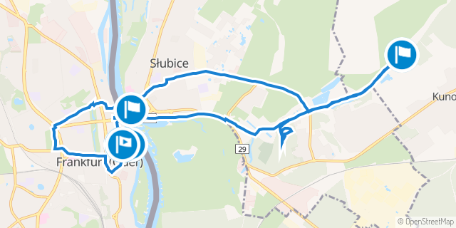 Do zwiedzania potrzebny Ci będzie smartfon. Jeśli nie masz smartfonu, możesz wypożyczyć tablet w Polsko-Niemieckiej Informacji Turystycznej w Domu Bolfrasa/Bolfrashaus we Frankfurcie nad Odrą. Trasę możesz wyznaczyć sobie samodzielnie: pieszo przez Frankfurt (ok. 1 godz.), przez Słubice (ok. 1 godz.) albo rowerem do Kunowic (ok. 4 godz.).